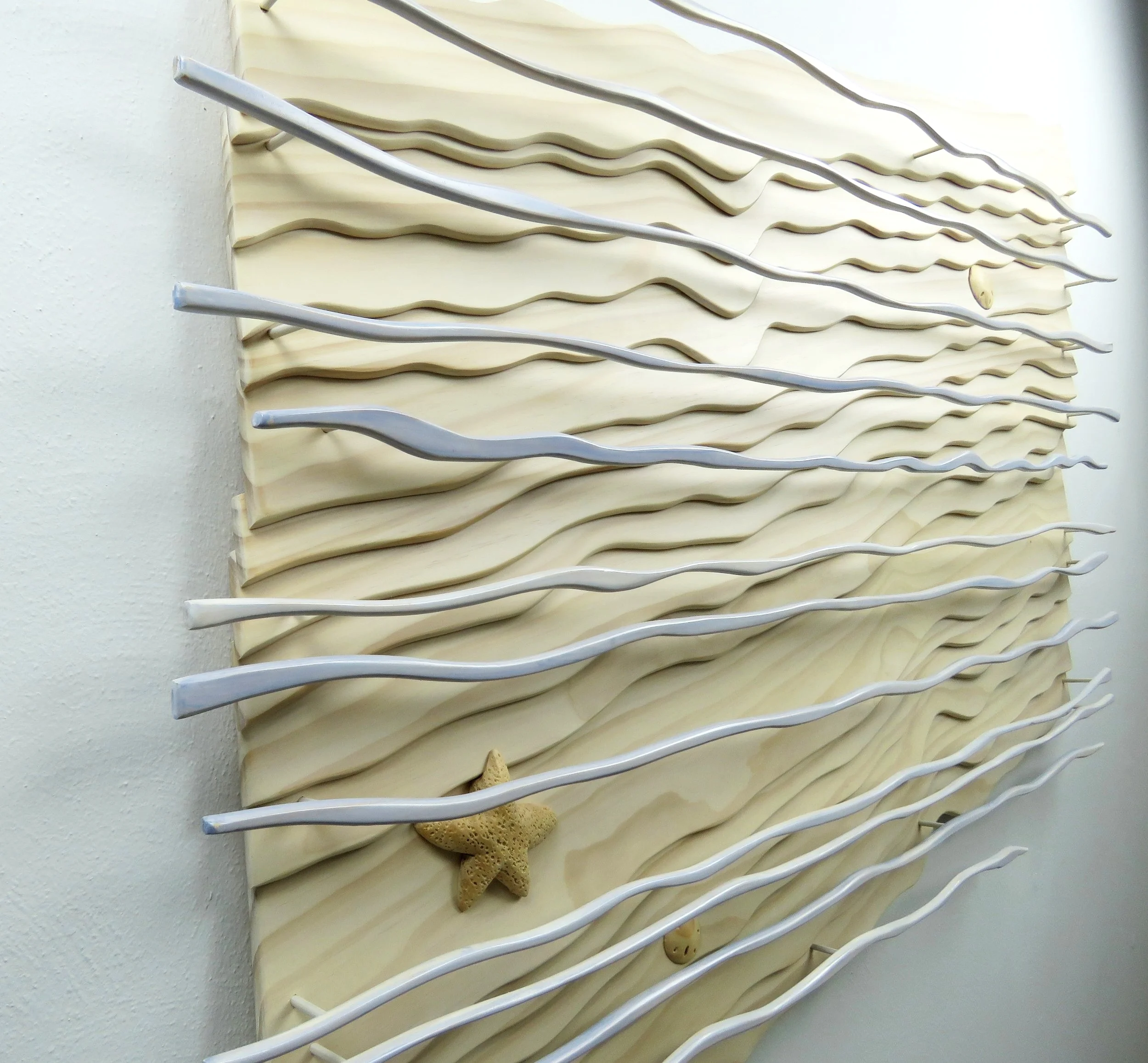 Wood wall sculpture inspired by the beauty and movement of beach and sea. Commissions welcome.